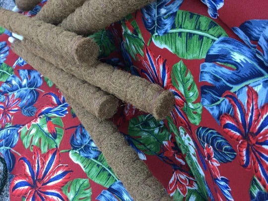 Natural coco fiber, Rugged, Sturdy climbing poles designed to provide superior support for indoor climbing plants. Coco fiber is an excellent material for climbing plants allowing the plants to grow vertically healthily and quickly. These poles are made with a high quality all natural latex free coco fiber wrapped tightly around a sturdy PVC support pole.