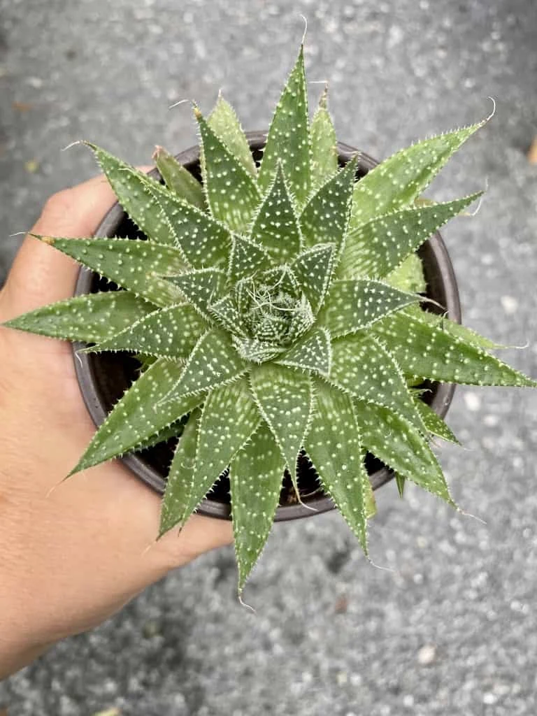 Although hardier than many aloes, it’s best grown as a houseplant or in a greenhouse. Aloe aristata grows best in full sun, in sandy, free-draining compost, such as cactus compost. Water sparingly and avoid watering in the dormant period (September to March).