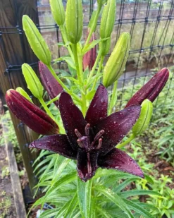 Asiatic Black Wizard Lilies are a *very* deep purple, Garnet, or red depending on feeding and can look black in full sun. Older lilies get very tall and definitely require some sort of staking if you don’t have multiple tall plants together. These are the flowers that bloomed in 2022, so you see actual coloring in North Florida’s full sun. 1st Pic is from ONE bulb with 17 Blooms coming in. You will receive one bulb/plant. Depending on time of year, you will receive the full stem with leaves. If in dormant stage, you will receive the bulb. Depending on your Zone, you will either keep it in a cool location (google your zone with how to store Asiatic Lily bulbs), or if not freezing temps yet, or in warmer zones, you can plant and cover with a few inches of mulch for it to get ready to grow in the Spring. I will leave on the stem of the previous year’s growth as long as I can so you can see how many blooms it gave in 2022. Or I will just write it in your note. The $15.00 bigger bulbs, will have 9-12 or more blooms. THIS YEAR. All of mine for sale are 3-4 years old. And every year the bulbs grow more and more blooms each. My biggest bulb is growing 18 blooms this year. They begin blooming at end of April Beginning of May. 2023 will mean either more blooms and OR another stalk of lily from the same bulb, and more baby bulbs every year! Had many in 2022! Please be aware of your weather and zone. You are looking at the inventory of a North Central Florida Garden Center. It gets hot here. And it can get in the 20’s in the winter, but not for days at a time. Please google your area before purchasing, so you know how to plant and care for your purchase. I will help as much as I can.