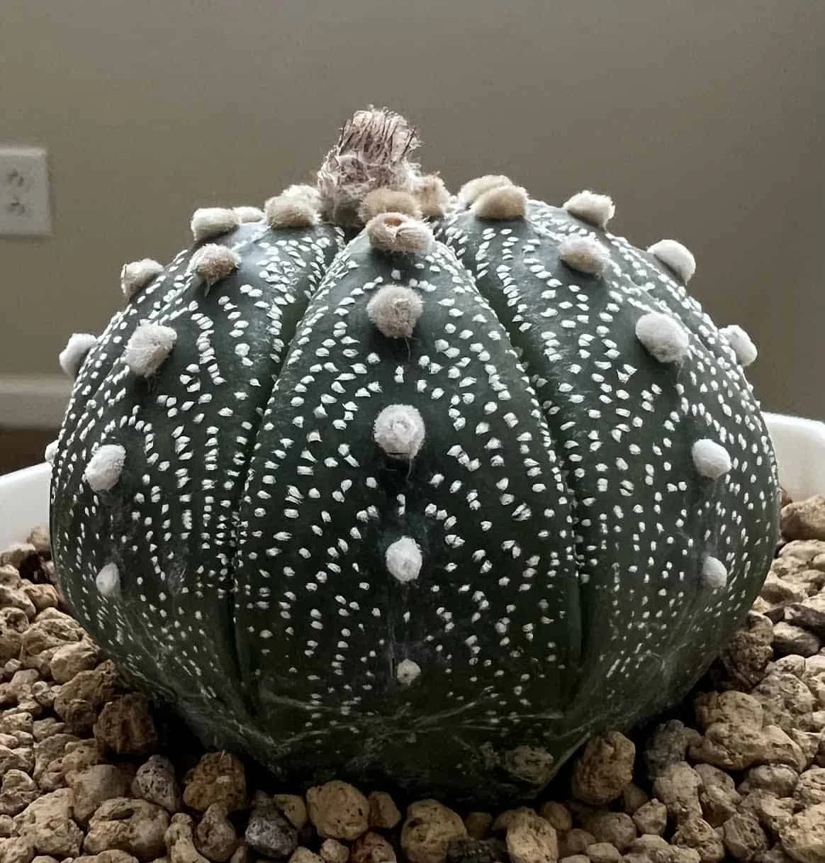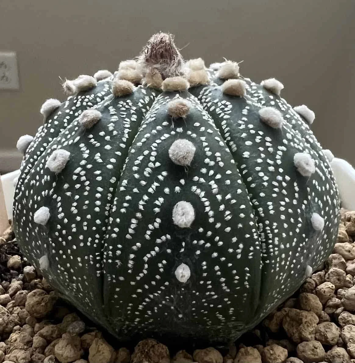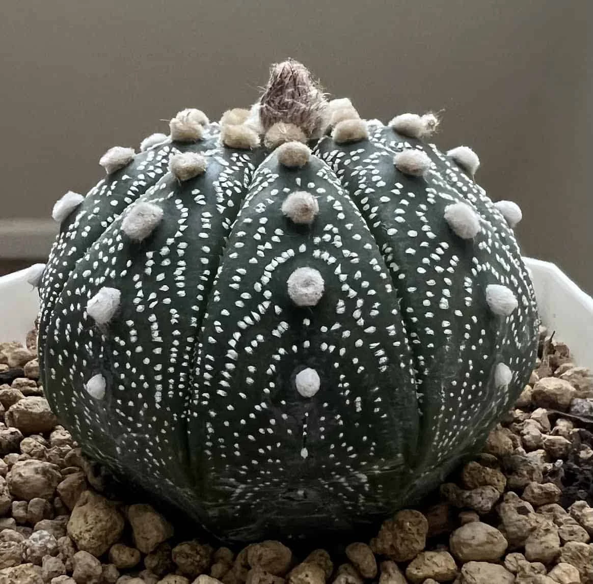 Caring for Astrophytum requires patience, as this plant is a slow bloomer and may not reach its full potential for several years. Keep this cactus regularly watered and lightly fertilized during its growing season, and then repot it annually to allow more room for development.