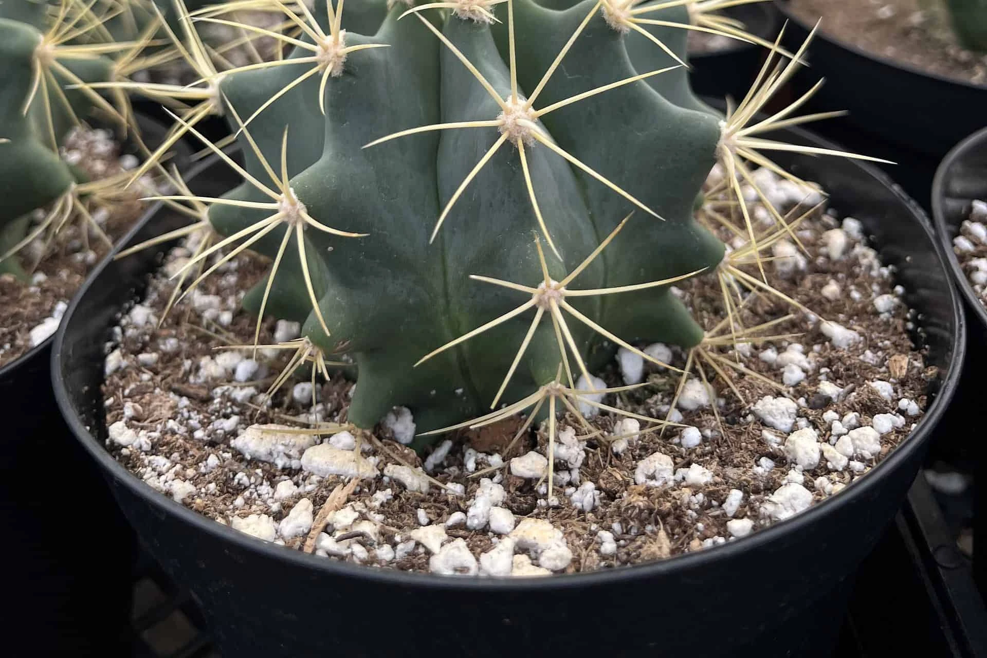 Blue barrel cactus is easy to grow and easy to care for and a perfect for beginners. It thrives in full sun to partial shade and well-drained soil. Allow the soil to dry before watering them, and make sure there is an excellent draining hole in the pot to prevent root rot.
