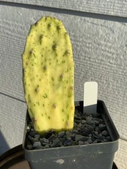 Opuntia cochenillifera sunburst -variegated is native to Mexico and is well known for its common name “Cochineal Nopal Cactus”. The growth rate of the Nopal cactus is fast and they flower in late spring and early summer in the vibrant pink shade. Opuntia does not require much water and fertilizer to grow. Fertilize only during the spring and summer seasons. Avoid fertilizing during the winters.This variety of Opuntia van be grown in full sun to partial shade. At least five hours of direct sunlight is required to grow the Nopal cactus. The more sun it gets the more pink the pads will get.