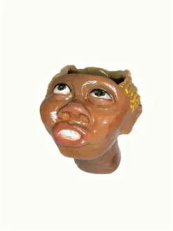 In stock, gift boxed delivered free to your home or office anywhere in the USA. Unique Planter Ceramic Pots for Succulents Cacti. Small planter with a child face. This handmade ceramic pot features braided clay where the plant goes. Life like skin tones and features. Reflects a multicultural society of children. Perfect gift and children really love this whimsical piece of functional art. Arriving in a gift box this small colorful head planter is handmade and hand painted. This planter is unique, specifically made for succulents but anything will grow in it. Other uses are candle holders, jewelry, keys, crayons , business cards. Stands 5 1/4″x 4″wide, numbered on bottom. Each handmade pot is numbered, no two are alike. Gar-Zen Botanical Designs is located in South Florida and is a Black and minority women owned business.