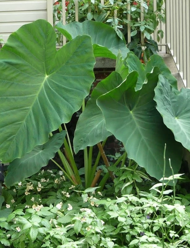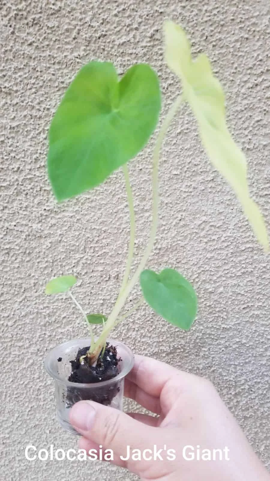Colocasia / Elephant Ear – Jack’s Giant Starter Plant. Each plant will have the potential extraordinary large green leaf growth in its lifetime. Most will reach over 5 feet in length & 3 feet wide. One of the largest leaf available in the the Colocasia family.
