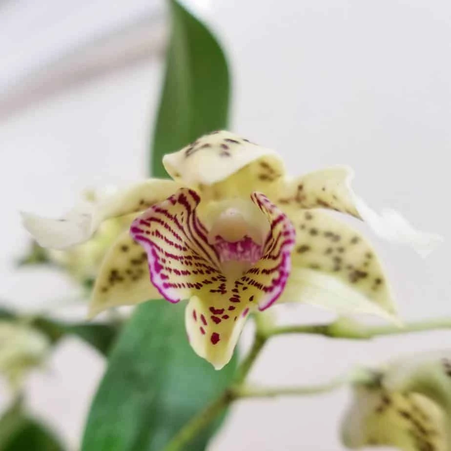 Dendrobium Chocolate Chip is an exquisite hybrid between the legendary Micro Chip and normanbyense. It’s a unique miniature orchid with sprays of delicate speckled white flowers. The front of the flowers is detailed with purple lining, while the back of each flower is as close to a chocolate chip cookie as an orchid could ever be!