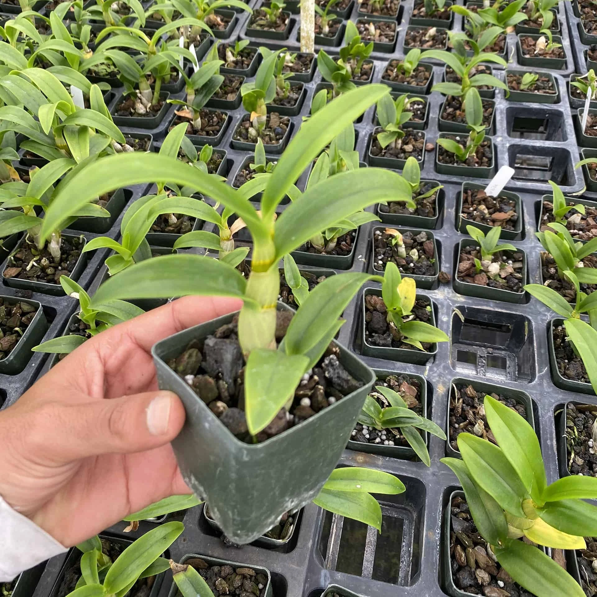 Dendrobium Morning Glory flowers are rounded and white in color with a dark blue / purple center of the lip. falls in the Dendrobium-Phalaenopsis category. The spray of flowers is very striking.