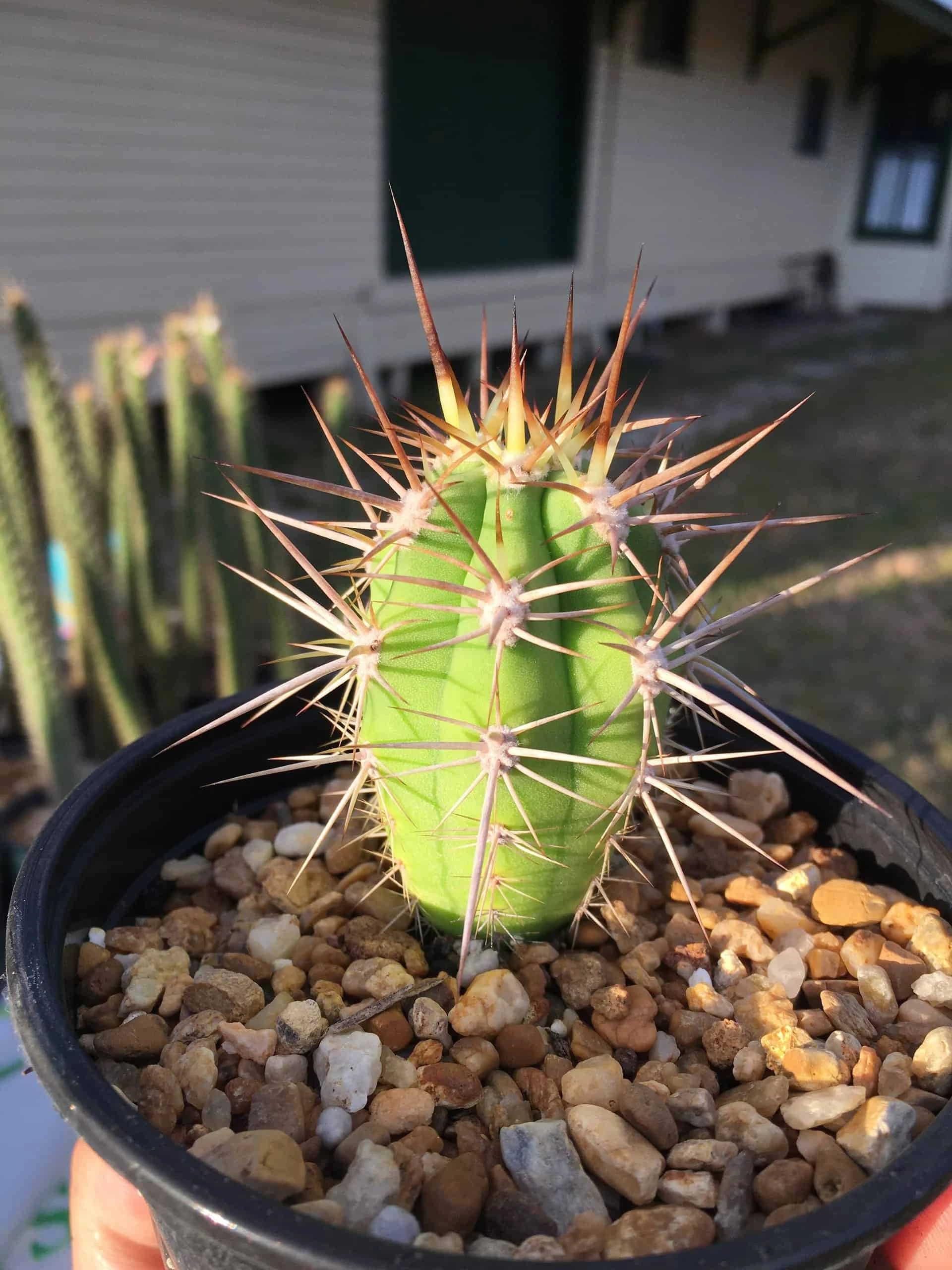 You will receive a roughly 3″ plant. Echinopsis chiloensis var. borealis is a spiny columnar cactus from Coquimba, Chile. It enjoys more frequent watering and added lime/bonemeal to soil. Can reach 8 meters tall.