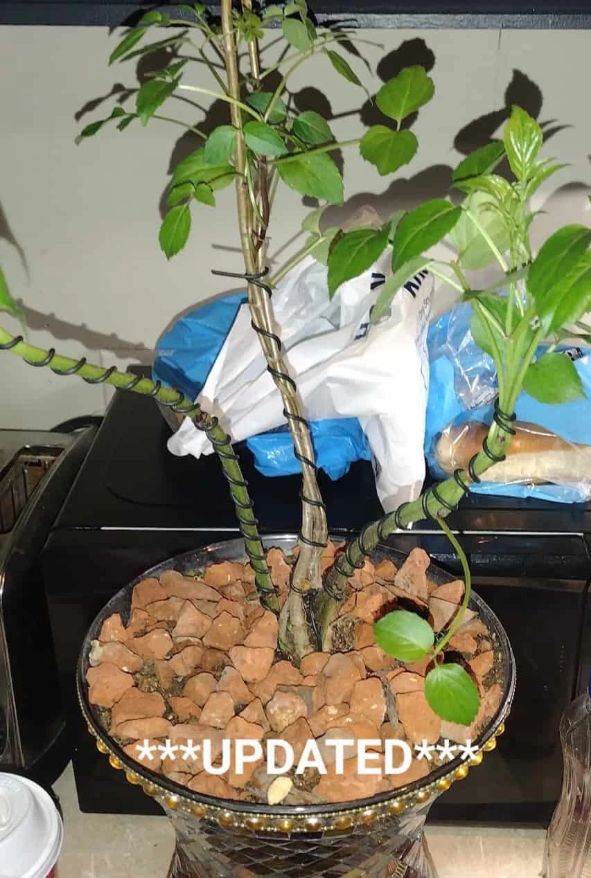 This Elder tree comes in a custom stained glass vase that gives it an elegant look and is one of a kind.ย This tree is a well established one year old with new clones popping up every week. She is the tree that keeps on giving. Perfect for any patio, sun room, or planted in a sunny yard!
