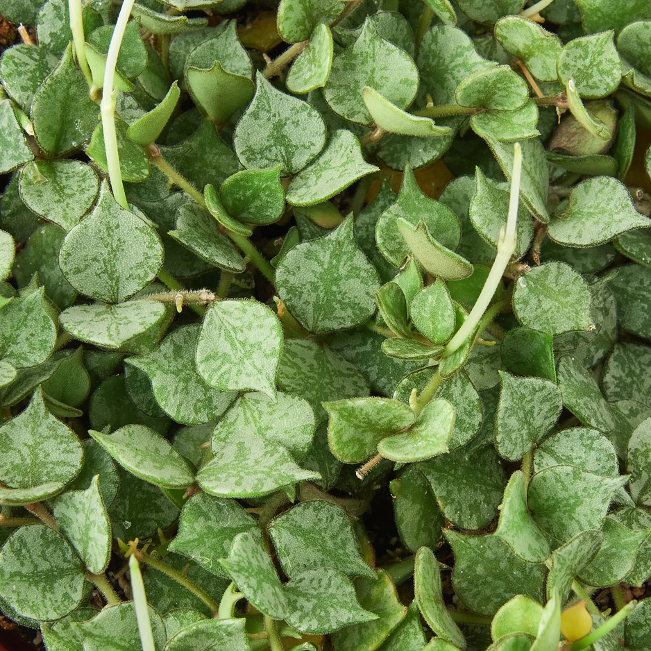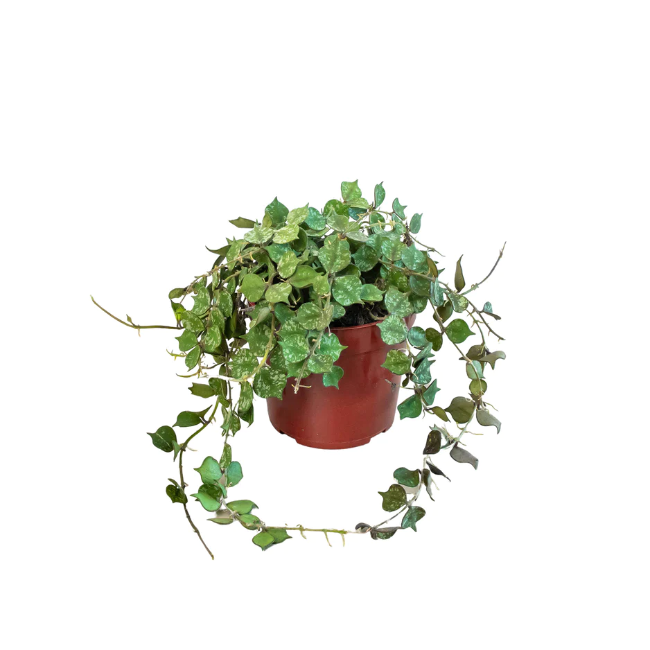 Description: Hoya curtisii is a miniature trailing hoya. This form of curtisii has small round olive green leaves mottled with grey. The apex is pointed on the thick succulent leaves. This will make a tight mat over the soil surface and then hang down.