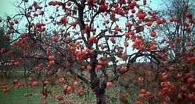 The FUYU persimmon trees are the most popular fresh eating Japanese persimmons in the world. The large, round, fruit has a deep orange skin. The tree bears at a young age (sometimes as young as 3 years old) and is a heavy producer. The fruit is seedless and is excellent for fresh eating or cooking. The FUYU ripens in November in most areas (depending on where you are located) and is as sweet and crisp as an apple.