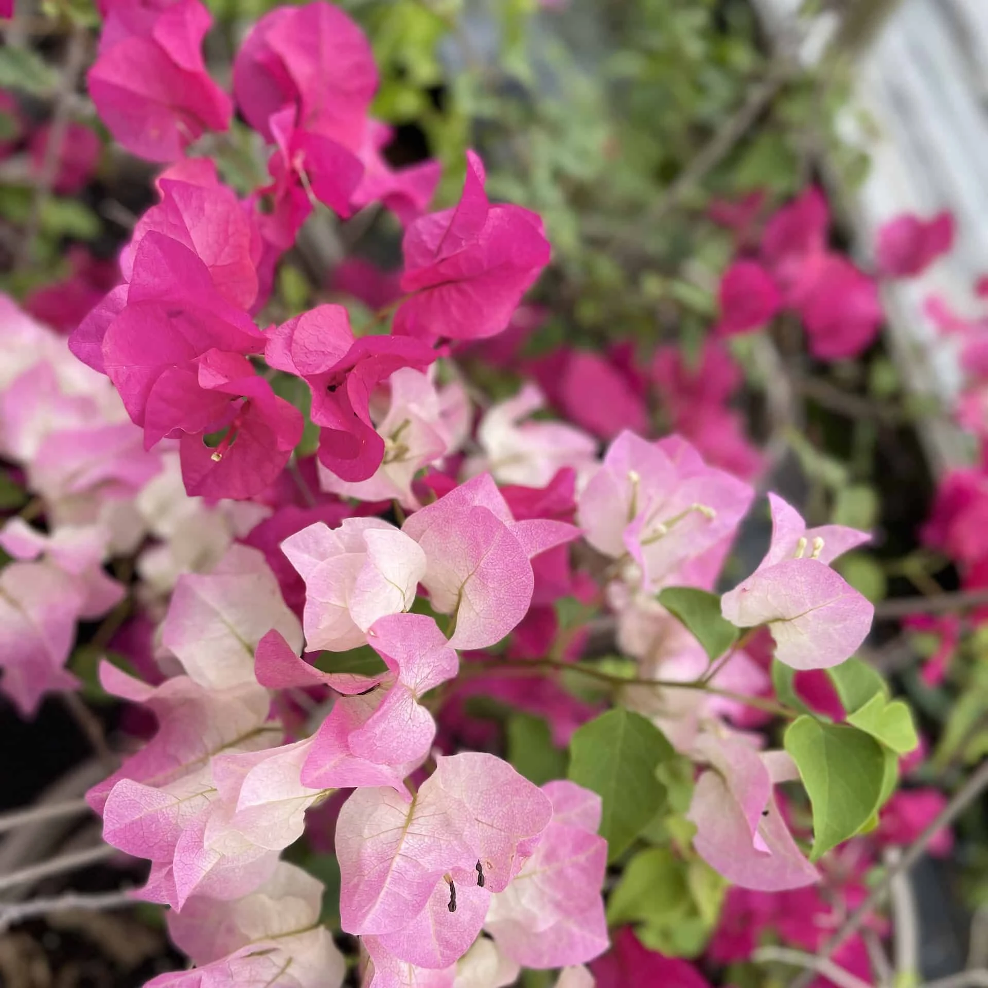 A tropical vining shrub that comes in a wide array of bright and fanciful colors. The “flowers” are actually modified leaves, called bracts, that are long-lasting and bright. The colorful bracts outshine the plant’s true flower, much like a poinsettia. They appear periodically throughout most of the year, but are especially plentiful in the summer, when the splashes of color are a welcome sight. Bougainvillea blooms in fuchsia, white, yellow, and orange. They require full sun and actually perform better when their soil is left a little dry, making this a perfect plant for a drought-tolerant landscape. Perennial when protected from frost and freeze. Unable to ship to the state of California |