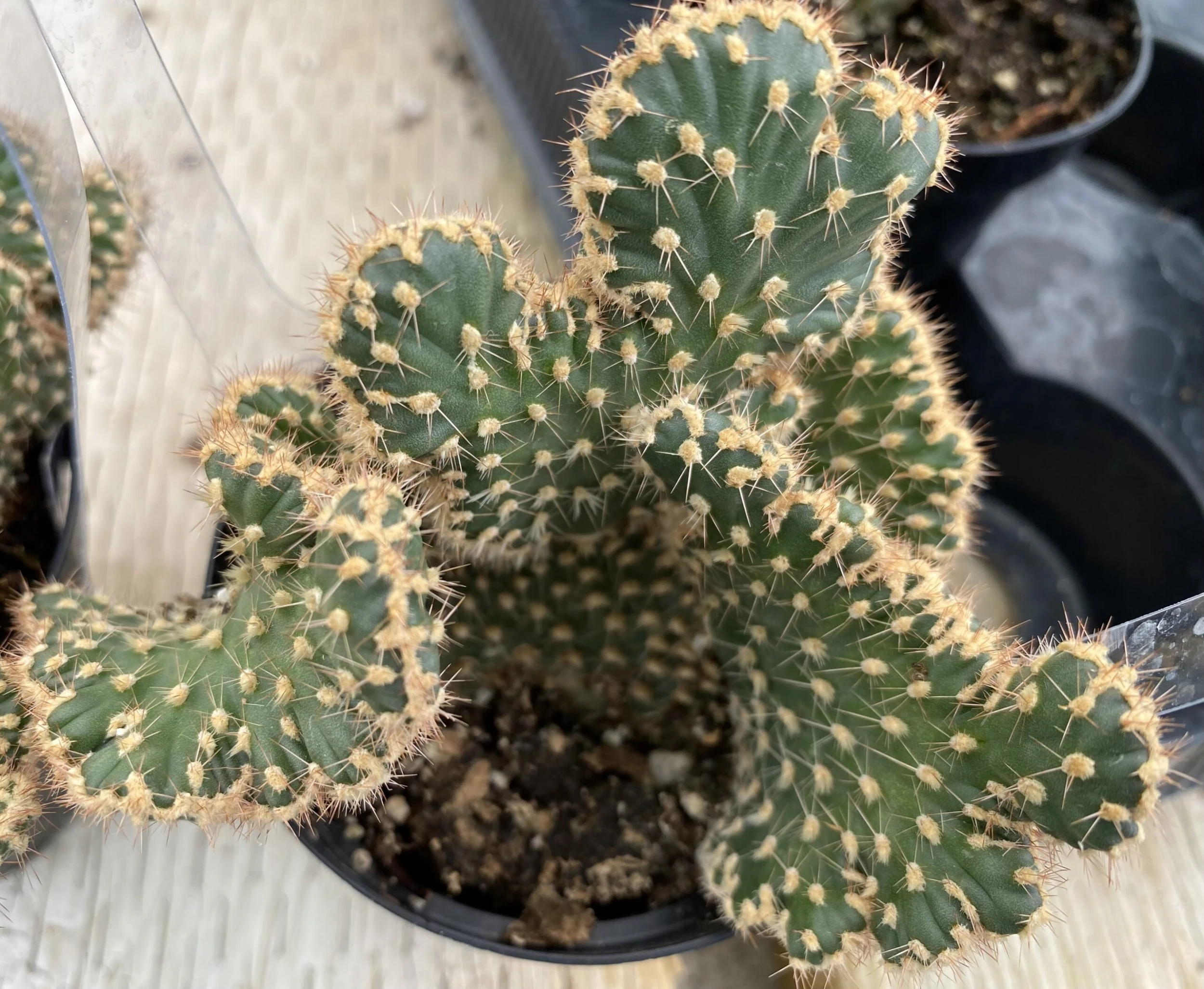Plant in a porous, well draining cactus/succulent soil. Provide plenty of sunlight. Water when soil is dry to the touch.