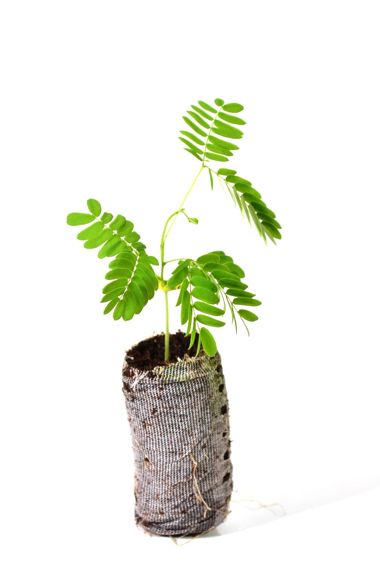 Healthy lot of 3 Mimosa tree seedlings (Albizia julibrissin) starter plugs – with soil/root plugs, not bare root.