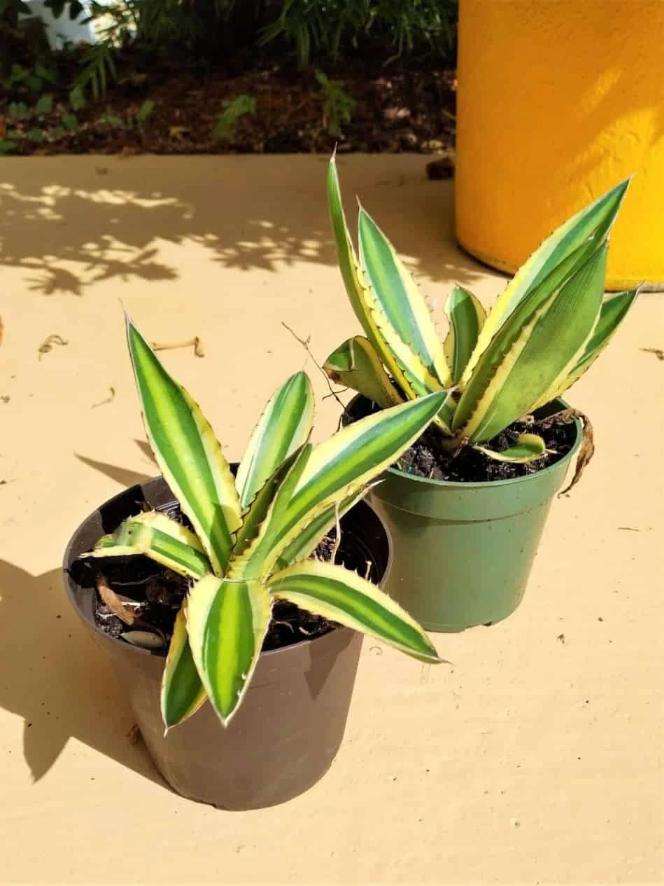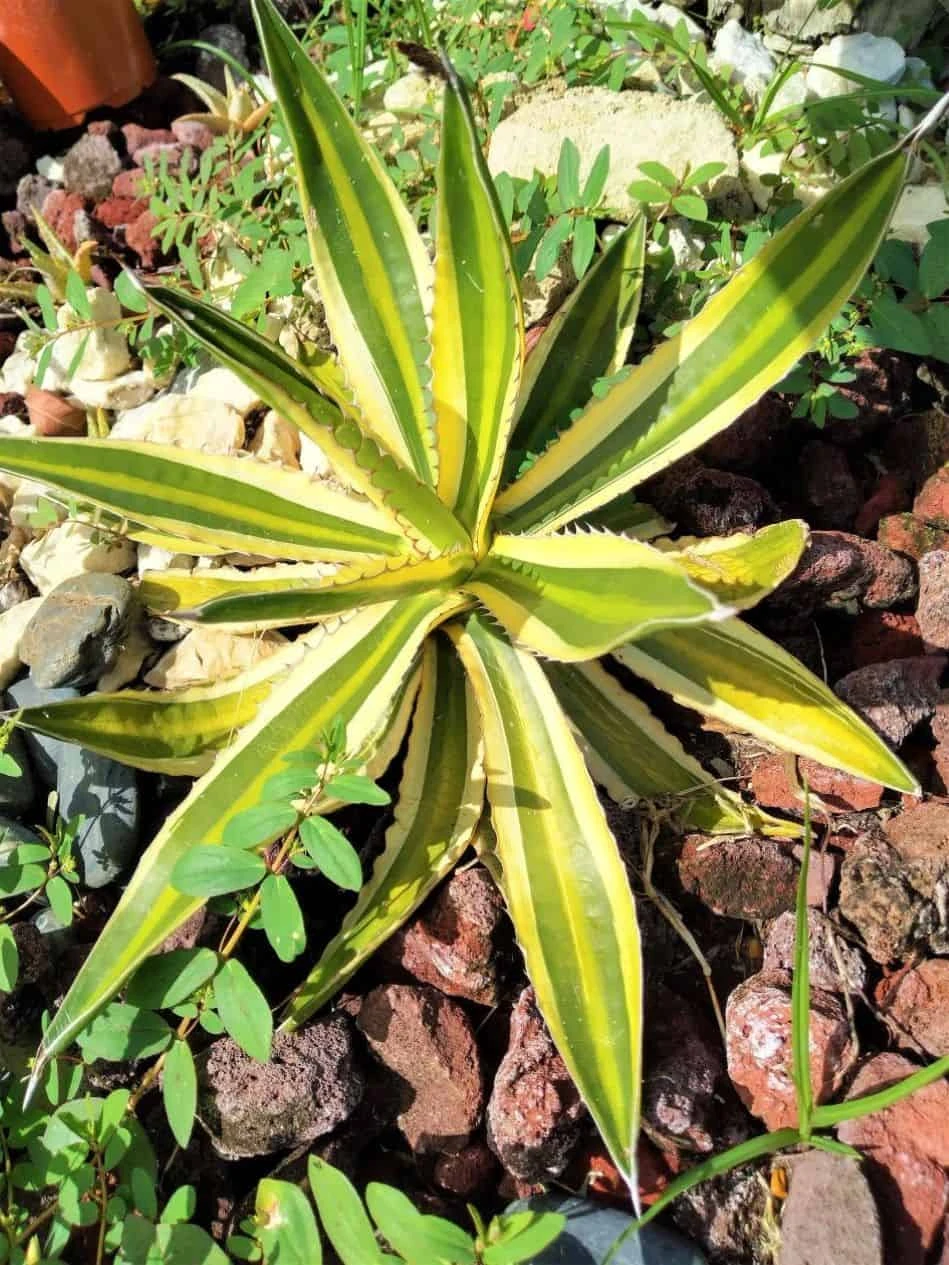 - Agave lophantha ‘Quadricolor’ organic is a beautiful small agave that forms a colorful rosette that can grow up to 40 cm tall and 60 cm wide. It has thick, leathery striped leaves of light to dark green and golden yellow edges with reddish spines on the side. It is native to Mexico, where it thrives in full sun to partial shades and is extremely drought tolerant.