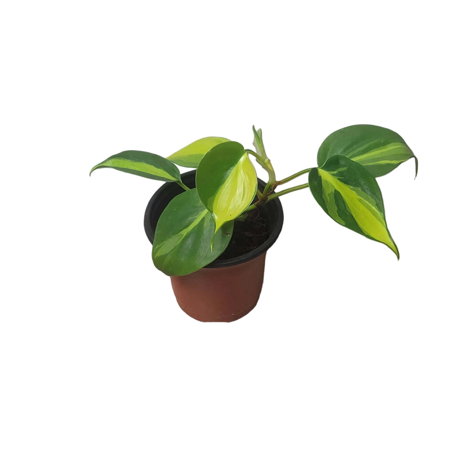Philodendron Brasil well rooted in a 4″ pot. Organically grown in Florida. These plants prefer bright indirect sunlight. Water once the first 2″ of soil have dried out. Applying an all purpose fertilizer at 1/3 strength during the active growing season will keep your plants happy and healthy. Philodendron are considered TOXIC to pets/people.