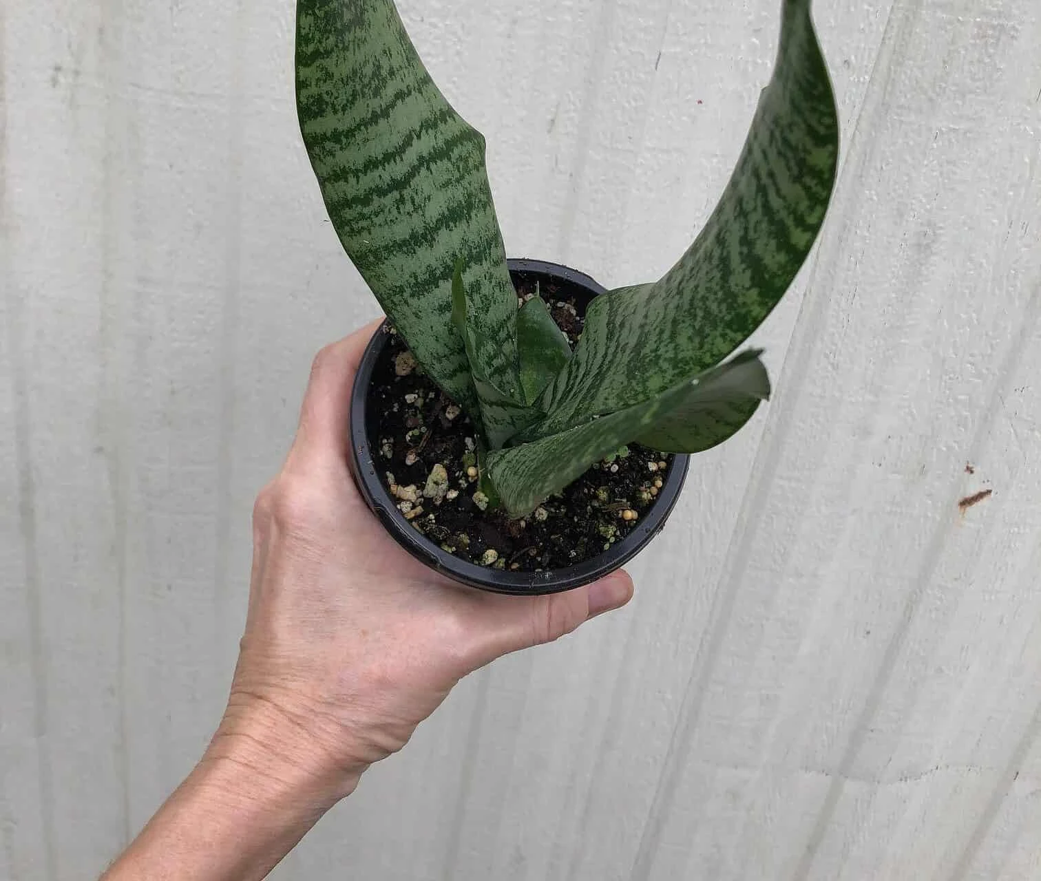 Growing the Snake Plant is easy. It will thrive in very bright light to almost dark corners of the house. Just water when the soil is dry.