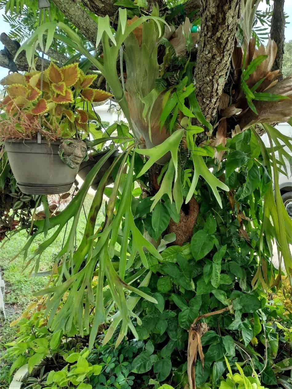 Offer is for 0ne (1) 8″ base fern for you to mount. Staghorn fern thrives in Florida’s heat and humidity; it grows quite well in South Florida and can be grown in North and Central Florida if protected from frosts and freezes. Folks in Northern states grow them on wood plaques, hanging moss balls or a stone inside their cabins and homes. In the Summer they are placed outside on a porch or barn for display. With its beautiful and unusual foliage, staghorn fern is found throughout much of the tropical world. Staghorn fern is a member of the Polypodiaceae family; there are presently eighteen known species, as well as many varieties and hybrids of this plant. This plant is an epiphyte, meaning it gets moisture and nutrients from the air. Staghorn is found growing harmlessly on tree trunks, branches, or even rocks. NO SOIL NEEDED. Keep from direct sun and mist once a week. Gar-Zen Botanical Designs is located in South Florida and is a Black minority women owned business. We grow organic plants only. We do not ship plants in plastic pots which we are trying to ban in Florida. Your plant arrives in biodegradable florist wrap.