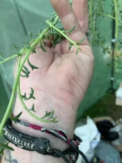 Beautiful plant, over 2 feet hanging!! Hard to find string of dolphins! Very easy to maintain ant have beautiful little yellow flowers that bloom. If you have any questions please contact me!