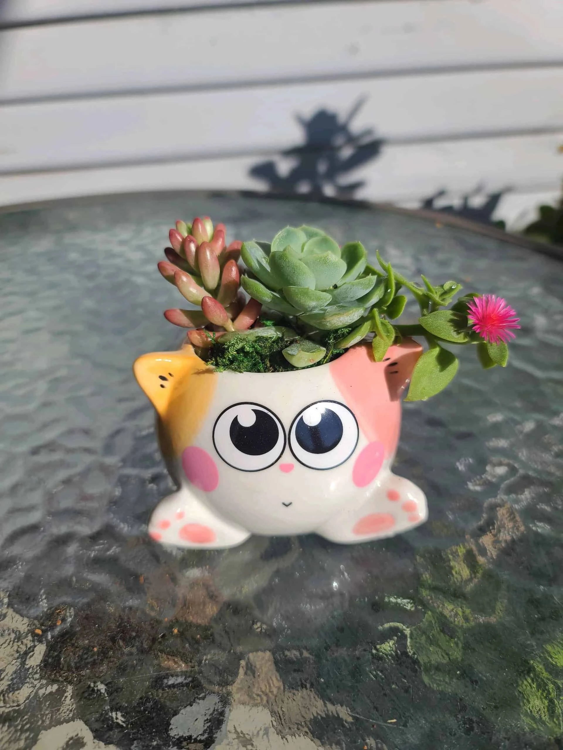 Be the first to review “Succulent Arrangement In Mini Cat Planter” Cancel reply