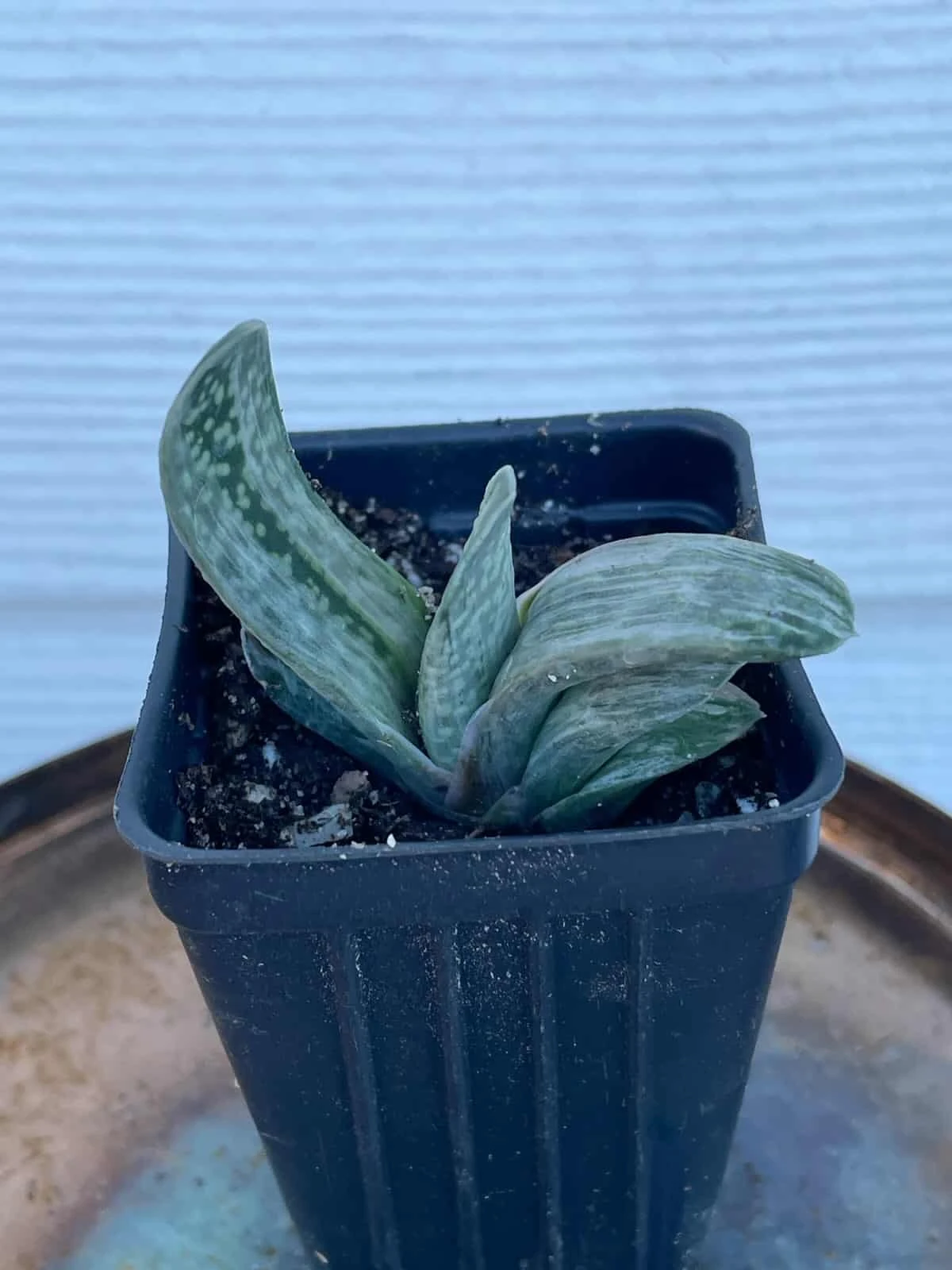 While all Gasteria can tolerate a greater degree of shade than most succulents, the variegation on ‘Sakura Fuji’ reduces the plant’s overall chlorophyll levels, meaning that it can benefit from at least morning sunlight – though afternoon shade would be more than acceptable. Due to the water content contained within its thick leaves, this variety requires thorough but infrequent watering to avoid root system to rot. So best water when it is growing and keep dry during dormancy.