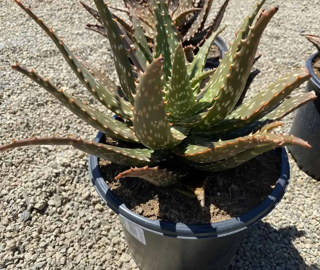 The Aloe ‘Freckles Hybrid The impressive size of this Aloe make it perfect for outdoor landscaping. Its leaves have lightly serrated edges and lots of white ‘Freckles’ on both the upper and lower surfaces. This Aloe Hybrid becomes the central focal point wherever it is placed. Great in rock gardens, any and all landscape areas, or planted as a lone plant in your garden setting.