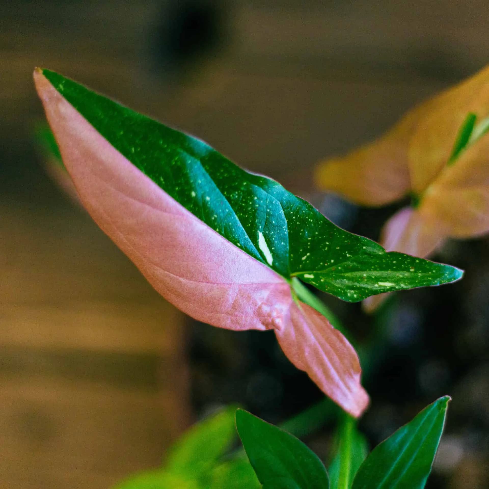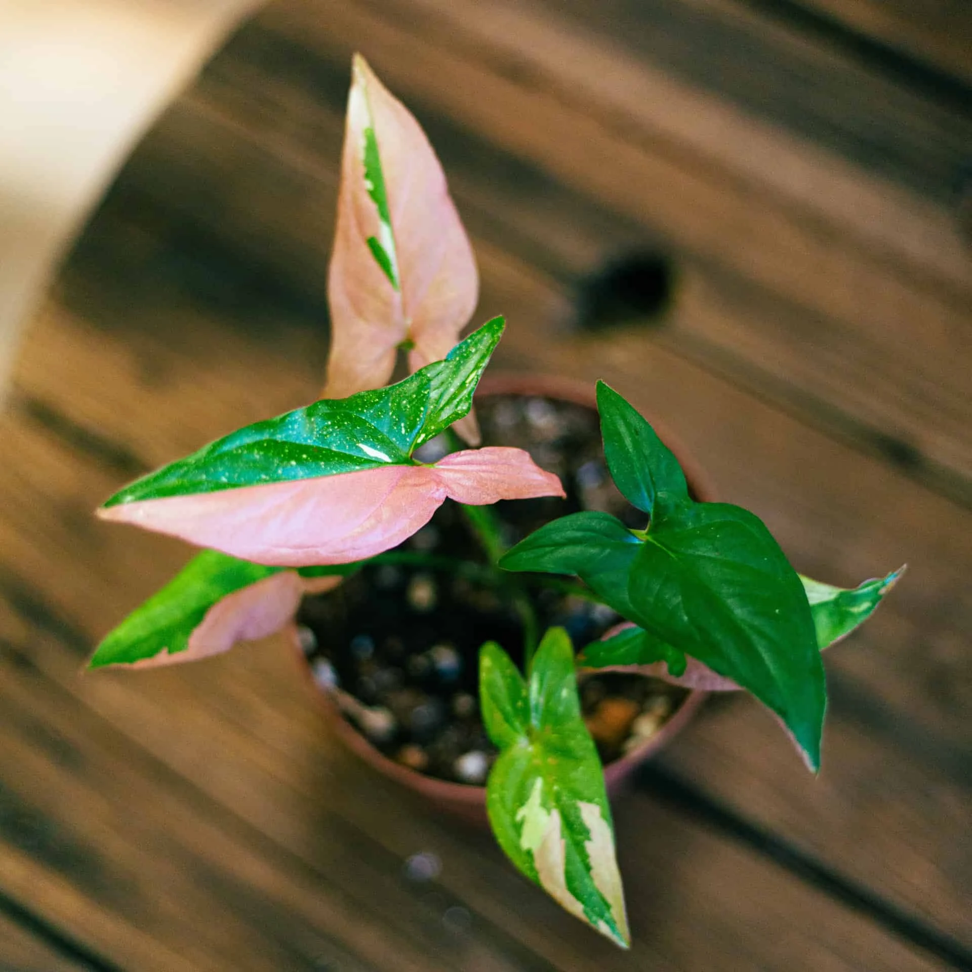 Syngonium Red Spot Tricolor in 5″ nursery pot. Fully Rooted. The plant pictured is the exact plant you will recieve.